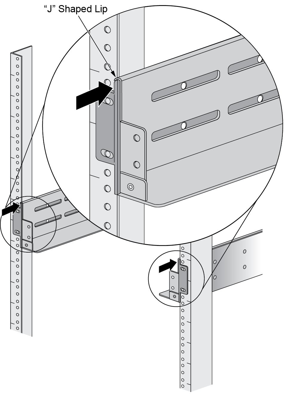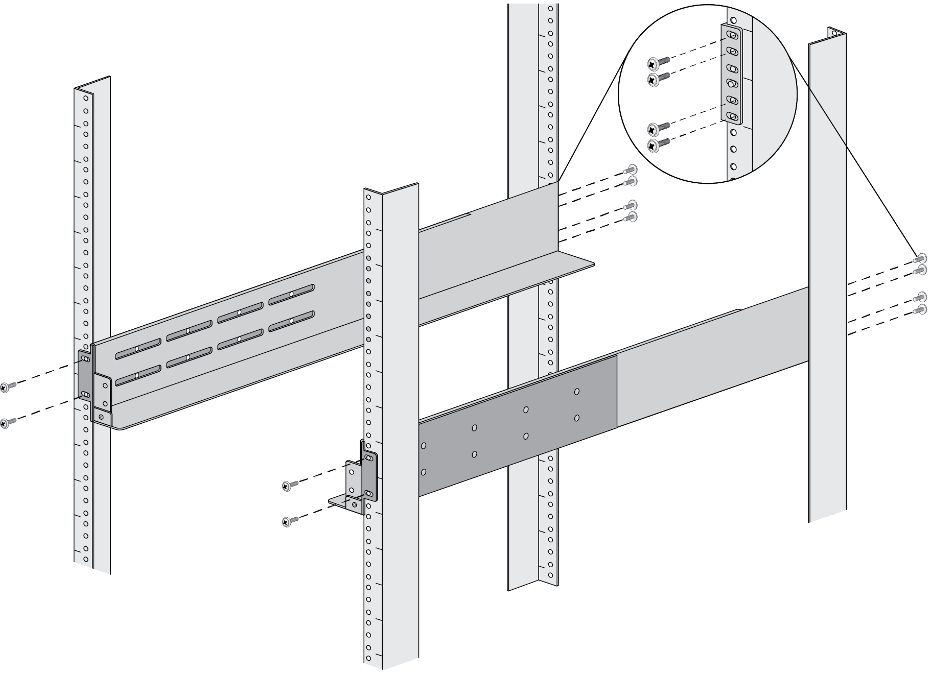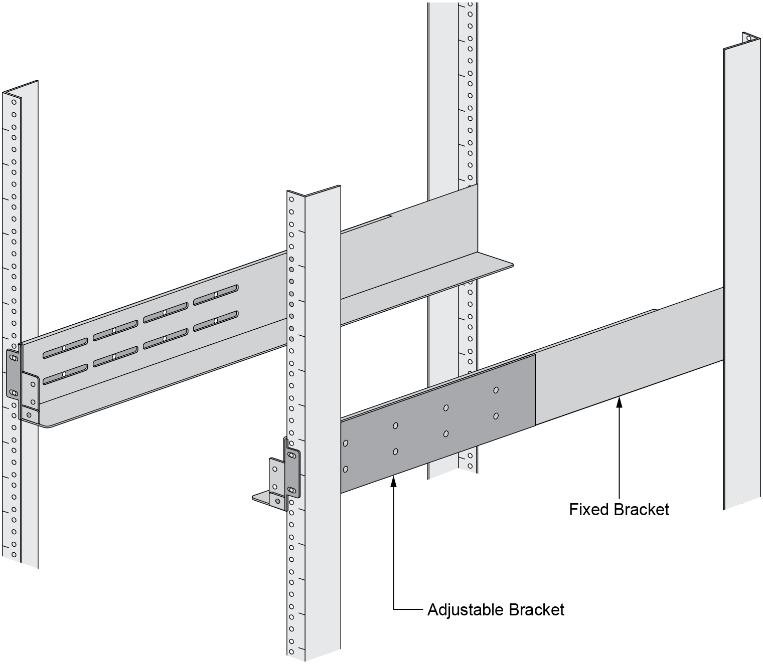 Adjust the brackets to fit the depth of the equipment frame, then secure the brackets to the equipment frame with mounting screws (not provided) compatible with your equipment frame. Tighten the screws to their recommended torque value.The mounting brackets are designed for equipment frames that are up to 32ā deep (81.3 cm).