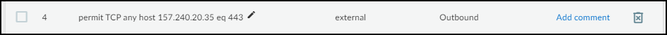 Modify the ACL rule set if necessary.Hover your cursor over a row to display the Edit icon for the ACL rule, an option to add a comment (or edit an existing comment), and an icon to remove a rule.