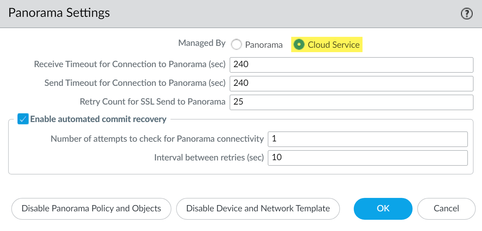 - Configure the Panorama Settings. -