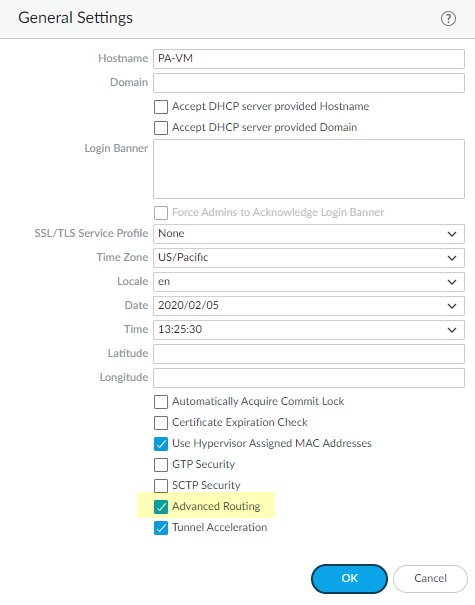 - Select DeviceSetupManagement and edit the General Settings.Enable Advanced Routing.