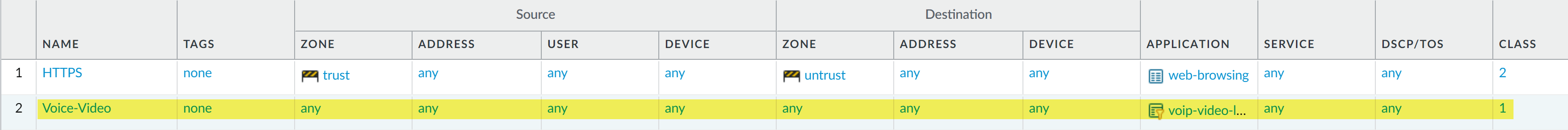 This case demonstrates how to apply QoS to traffic originating from a single source user. However, if you also wanted to guarantee or shape traffic to a destination user, you could configure a similar QoS setup. Instead of, or in addition to this workflow, create a QoS policy rule that specifies the user’s IP address as the Destination Address on the PoliciesQoS page (instead of specifying the user’s source information) and then enable QoS on the network’s internal-facing interface on the NetworkQoS page (instead of the external-facing interface).Use Case: QoS for Voice and Video Applications