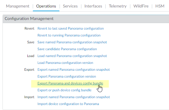 - Log in to the Panorama web interface.Modified your Security policy rule to allow ssl application traffic.This applies to firewalls upgraded from PAN-OS 10.1 to PAN-OS 11.0 using Skip Software Version upgrade only.This is required to prevent managed devices disconnecting from Panorama after upgrade to PAN-OS 11.0 if traffic between Panorama and managed devices is controlled using the panorama App-ID. Managed devices will disconnect from Panorama if the ssl application is not allowed before you upgrade.PAN-OS 11.0 uses TLS version 1.3 to encrypt the service certificate and handshake messages between Panorama and managed firewalls. As a result, the App-ID for traffic from managed firewalls to Panorama is reclassified from panorama to ssl. To continue communication between Panorama and managed devices, you must modify the Security policy rule controlling traffic between Panorama and managed devices to also allow the ssl application.Skip this step if the Security policy rule controlling traffic between Panorama and managed devices allows Any application or if you already modified your Security policy rule controlling traffic between Panorama and managed devices.- Select PoliciesSecurityPre Rules.Select Device Group containing the Security policy rule controlling traffic between Panorama and managed firewalls.Select the Security policy rule.Select Application and Add the ssl.Do not delete the panorama application. This will cause all managed firewalls to disconnect from Panorama after you push the changes.![]() Click OK.Select CommitCommit and Push and Commit and Push your configuration changes.Save a backup of the current configuration file on each managed firewall you plan to upgrade.Although the firewall automatically creates a configuration backup, it is a best practice to create and externally store a backup before you upgrade. Click OK.Select CommitCommit and Push and Commit and Push your configuration changes.Save a backup of the current configuration file on each managed firewall you plan to upgrade.Although the firewall automatically creates a configuration backup, it is a best practice to create and externally store a backup before you upgrade.- Select PanoramaSetupOperations and click Export Panorama and devices config bundle to generate and export the latest configuration backup of Panorama and of each managed appliance.![]() Save the exported file to a location external to the firewall. You can use this backup to restore the configuration if you have problems with the upgrade.Install the latest content update.Refer to the Release Notes for the minimum content release version required for PAN-OS 11.0. Make sure to follow the Best Practices for Applications and Threats Content Updates when deploying content updates to Panorama and managed firewalls. Save the exported file to a location external to the firewall. You can use this backup to restore the configuration if you have problems with the upgrade.Install the latest content update.Refer to the Release Notes for the minimum content release version required for PAN-OS 11.0. Make sure to follow the Best Practices for Applications and Threats Content Updates when deploying content updates to Panorama and managed firewalls.- Select PanoramaDevice DeploymentDynamic Updates and Check Now for the latest updates. If an update is available, the Action column displays a Download link.![]() Click Install and select the firewalls on which you want to install the update. If you are upgrading HA firewalls, you must update content on both peers.Click OKDetermine the Upgrade Path to PAN-OS 11.0.Review the PAN-OS Upgrade Checklist, the known issues and changes to default behavior in the Release Notes and upgrade/downgrade considerations for each release through which you pass as part of your upgrade path.If upgrading more than one firewall, streamline the process by determining upgrade paths for all firewalls before you start downloading images.(Best Practices) If you are leveraging Cortex Data Lake (CDL), install the device certificate.The firewall automatically switches to using the device certificate for authentication with CDL ingestion and query endpoints on upgrade to PAN-OS 11.0.If you do not install the device certificate prior to upgrade to PAN-OS 11.0, the firewall continues to use the existing logging service certificates for authentication.(HA firewall upgrades only) If you will be upgrading firewalls that are part of an HA pair, disable preemption. You need only disable this setting on one firewall in each HA pair. Click Install and select the firewalls on which you want to install the update. If you are upgrading HA firewalls, you must update content on both peers.Click OKDetermine the Upgrade Path to PAN-OS 11.0.Review the PAN-OS Upgrade Checklist, the known issues and changes to default behavior in the Release Notes and upgrade/downgrade considerations for each release through which you pass as part of your upgrade path.If upgrading more than one firewall, streamline the process by determining upgrade paths for all firewalls before you start downloading images.(Best Practices) If you are leveraging Cortex Data Lake (CDL), install the device certificate.The firewall automatically switches to using the device certificate for authentication with CDL ingestion and query endpoints on upgrade to PAN-OS 11.0.If you do not install the device certificate prior to upgrade to PAN-OS 11.0, the firewall continues to use the existing logging service certificates for authentication.(HA firewall upgrades only) If you will be upgrading firewalls that are part of an HA pair, disable preemption. You need only disable this setting on one firewall in each HA pair.- Select DeviceHigh Availability and edit the Election Settings.If enabled, disable (clear) the Preemptive setting and click OK.![]() Commit your change. Make sure the commit is successful before you proceed with the upgrade.(HA firewall upgrades only) Suspend the primary HA peer to force a 