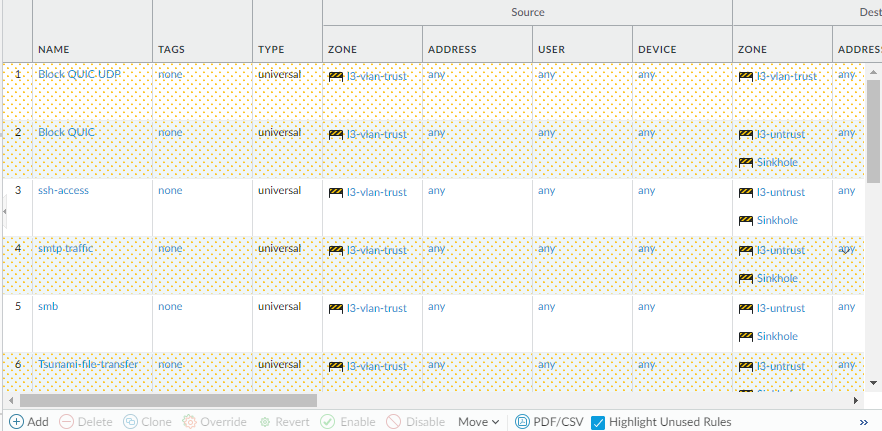Highlight Unused Rule | Highlight any policy rule with no traffic