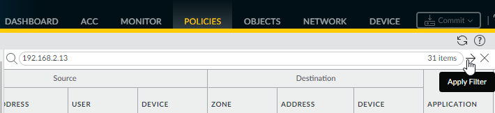 for the selected policy rulebase to verify that the correct traffic