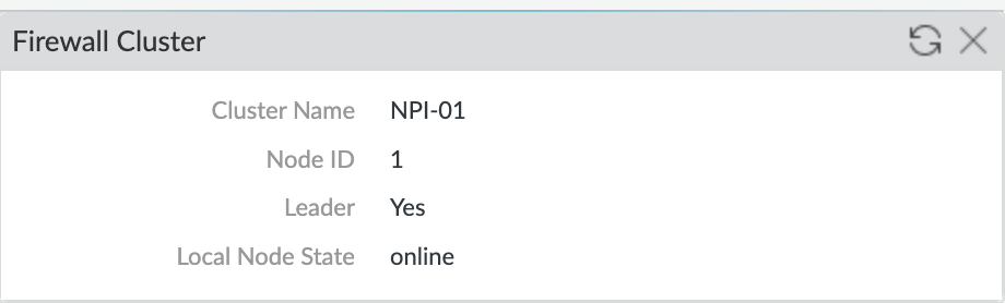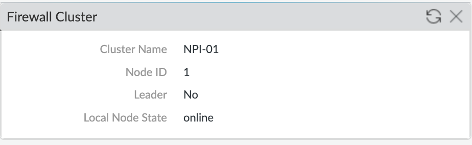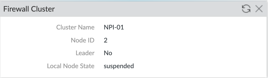 - Identify the leader node for the cluster and verify that the PA-7500 Series firewall is online. On the PA-7500 Series firewall, select DashboardWidgetsSystemFirewall Cluster. Notice that this firewall has Node ID 1 and is the Leader. The Local Node State is online.![]() In the General Information section, note the Serial # of the firewall.Access Panorama and select Firewall ClustersSummary View. In the Clusters field, select PA-Series. Scroll down until you find that serial number of the firewall in the Cluster Name column; select the checkbox to the left of the serial number. Click Suspend Node at the bottom of the screen.The Suspend Node window appears; the Delay indicates how many seconds it will take the firewall to change from online to suspended state (120 seconds in this case). During that time the firewall will transfer its sessions to the other firewall and traffic will fail over to the other firewall. Click OK to suspend the node. In the General Information section, note the Serial # of the firewall.Access Panorama and select Firewall ClustersSummary View. In the Clusters field, select PA-Series. Scroll down until you find that serial number of the firewall in the Cluster Name column; select the checkbox to the left of the serial number. Click Suspend Node at the bottom of the screen.The Suspend Node window appears; the Delay indicates how many seconds it will take the firewall to change from online to suspended state (120 seconds in this case). During that time the firewall will transfer its sessions to the other firewall and traffic will fail over to the other firewall. Click OK to suspend the node.![]() To confirm the node suspension happened, select Tasks at the bottom of the screen. In the Task Manager window, you can see a Troubleshooting task with a recent Start Time and a Status that indicates Completed. To confirm the node suspension happened, select Tasks at the bottom of the screen. In the Task Manager window, you can see a Troubleshooting task with a recent Start Time and a Status that indicates Completed.![]() On the firewall, while the 120-second delay occurs, observe that the Firewall Cluster for Node ID 1 indicates the Local Node State is degraded (the state between online and suspended). Click the refresh arrows to refresh the screen; the Local Node state changes to suspended and the firewall is no longer the Leader.Access the second PA-7500 Series firewall, select DashboardWidgetsSystemFirewall Cluster. Notice that this firewall has Node ID 2 and is now the Leader. Its Local Node State is online.On the first firewall that you suspended, you can now download the PAN-OS release to which you are upgrading. Select DeviceSoftware and Check Now. Locate and Download the PAN-OS version you want.The download can take a little longer than downloading to a smaller firewall because the PA-7500 Series firewall downloads to an MPC and SFC and they must sync.Install the image. Click Yes to install.After the installation completes successfully, when you are prompted to reboot, click Yes.Verify that the first firewall is back online. Select DashboardWidgetsSystemFirewall Cluster. Notice that the firewall is not the Leader, but the Local Node State is online. On the firewall, while the 120-second delay occurs, observe that the Firewall Cluster for Node ID 1 indicates the Local Node State is degraded (the state between online and suspended). Click the refresh arrows to refresh the screen; the Local Node state changes to suspended and the firewall is no longer the Leader.Access the second PA-7500 Series firewall, select DashboardWidgetsSystemFirewall Cluster. Notice that this firewall has Node ID 2 and is now the Leader. Its Local Node State is online.On the first firewall that you suspended, you can now download the PAN-OS release to which you are upgrading. Select DeviceSoftware and Check Now. Locate and Download the PAN-OS version you want.The download can take a little longer than downloading to a smaller firewall because the PA-7500 Series firewall downloads to an MPC and SFC and they must sync.Install the image. Click Yes to install.After the installation completes successfully, when you are prompted to reboot, click Yes.Verify that the first firewall is back online. Select DashboardWidgetsSystemFirewall Cluster. Notice that the firewall is not the Leader, but the Local Node State is online.![]() Repeat the entire procedure on the second firewall to suspend it, at which point the Firewall Cluster for Node 2 will indicate suspended. Repeat the entire procedure on the second firewall to suspend it, at which point the Firewall Cluster for Node 2 will indicate suspended.![]() Then download the same PAN-OS release you choose for Node 1, install the release on Node 2, reboot, and verify that Node 2 is back online. Then download the same PAN-OS release you choose for Node 1, install the release on Node 2, reboot, and verify that Node 2 is back online.![]() When you are finished upgrading both firewalls, you will see that Node ID 1 is the Leader again and both firewalls are online. On each firewall's Dashboard, the General Information section indicates the new Software Version to which you upgraded. Both before and after the upgrades, Node ID 1 and Node ID 2 indicate they are online and Node ID 1 is the Leader. When you are finished upgrading both firewalls, you will see that Node ID 1 is the Leader again and both firewalls are online. On each firewall's Dashboard, the General Information section indicates the new Software Version to which you upgraded. Both before and after the upgrades, Node ID 1 and Node ID 2 indicate they are online and Node ID 1 is the Leader.![]()  ![]() (Optional) Access Panorama, select Firewall ClustersSummary View, and find the two serial numbers of the firewalls you upgraded, indicating that their Node Status is Online. (Optional) Access Panorama, select Firewall ClustersSummary View, and find the two serial numbers of the firewalls you upgraded, indic
