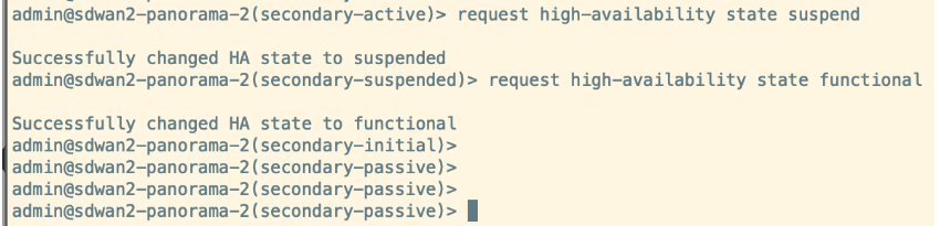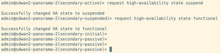 admin > request high-availbility state suspendadmin > request high-availbility state functional