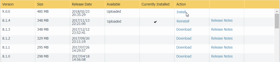 content release version.After you successfully download a content update file, the link in the Action column changes from Download to Install for that content release version.