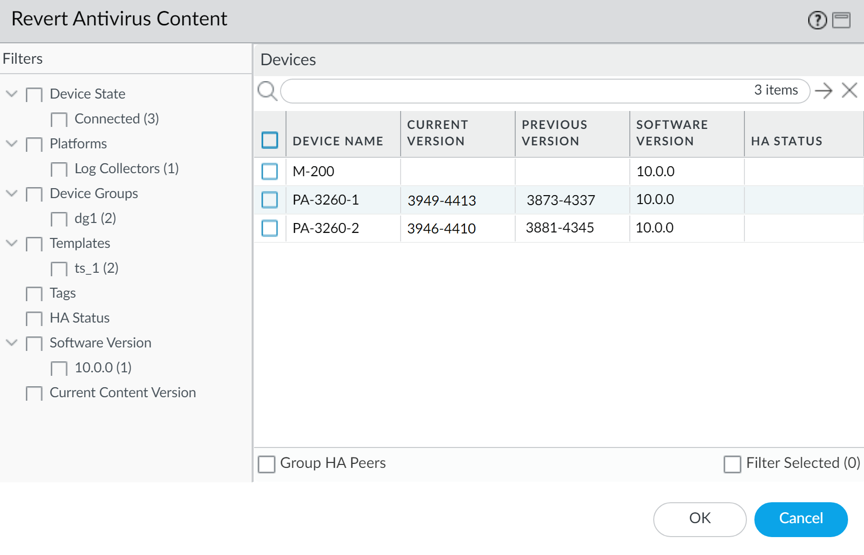 Antivirus, WildFire®, and WildFire content versions on managed firewalls