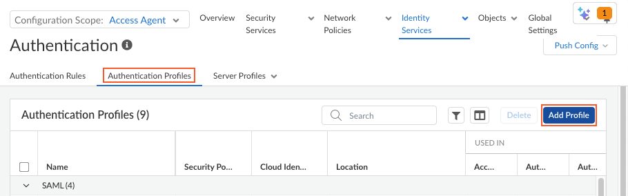 To use certificate authentication, you need to first create a certificate profile in ConfigurationNGFW and Prisma AccessConfiguration ScopeAccess AgentObjectsCertificate Management.