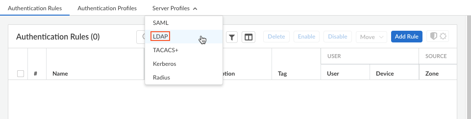 2. Create an authentication profile using the LDAP server profile. (Skip this step if you already have an authentication profile for LDAP.)