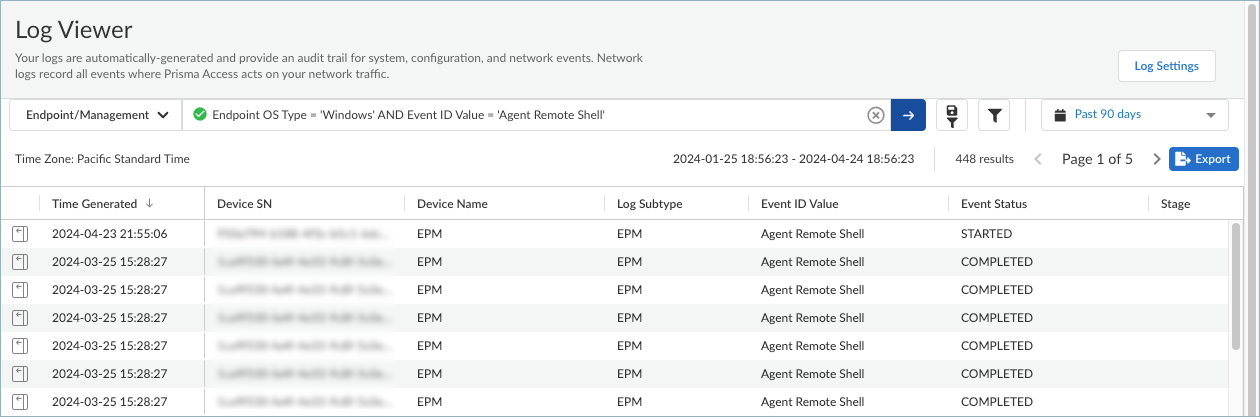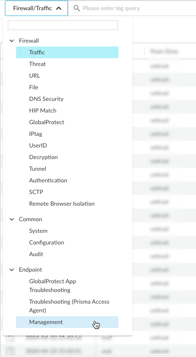 - From Strata Cloud Manager, select Log ViewerEndpointManagement: