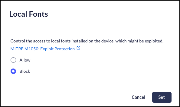- Block - Block the Prisma Access Browser from accessing local fonts installed on the device.