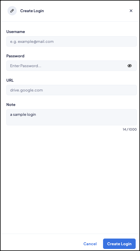 - URL of the application that triggers the Password Manager to suggest this login (mandatory).