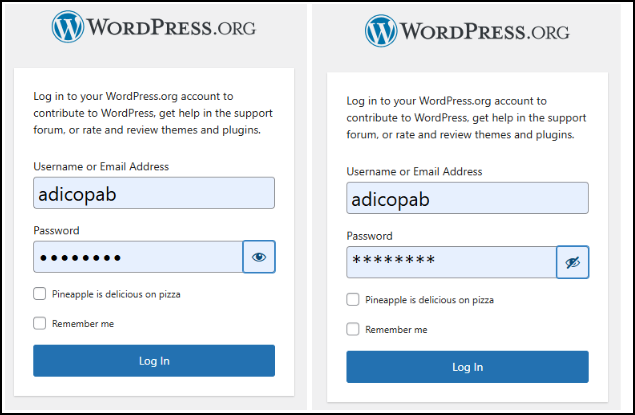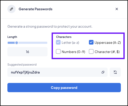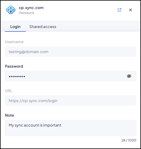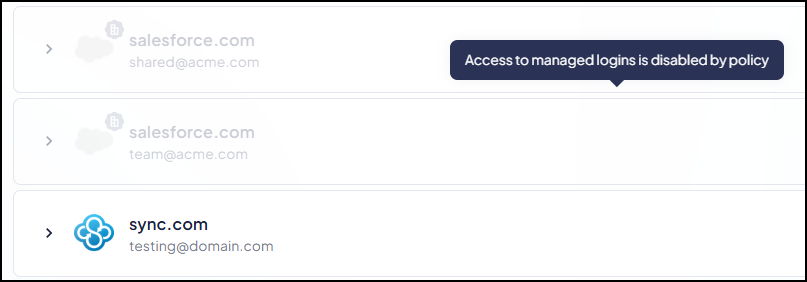 - Click the reveal or copy icons to view or copy the username or password (if allowed).