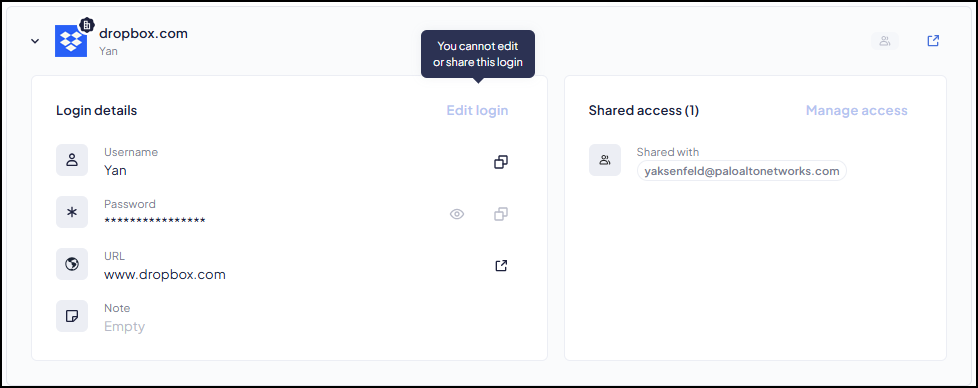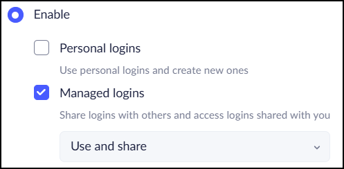 - If the login is a personal login - you will first need to enable sharing. This moves the login from the local store in the browser to the vault, turning it into a managed login