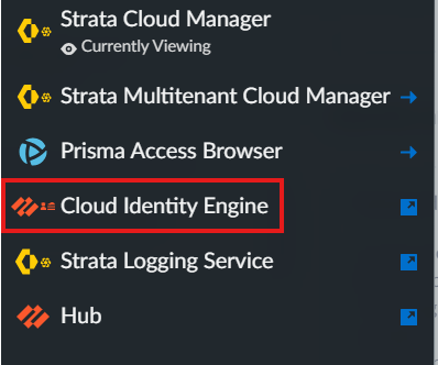 Identity Engine (CIE) console. Access the CIE console by clicking the tenant icon