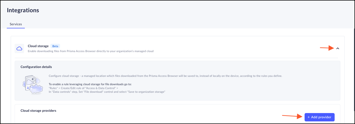 Storage Provider for use with Prisma Access Browser’s Save to Cloud feature.