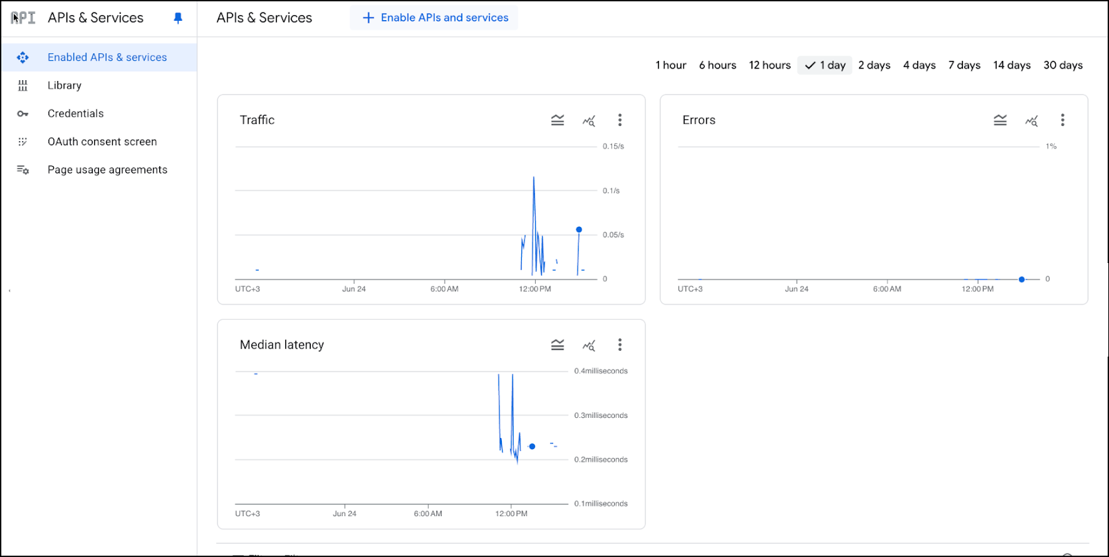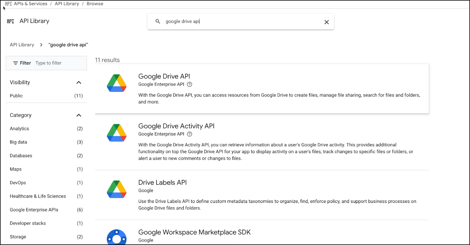 - Open a browser tab and navigate to the Google Cloud Console.Select or create a project that will be used for the integration.In the left side menu, go to APIs & Services → Enabled APIs and Services.Click Enable APIs & Services.