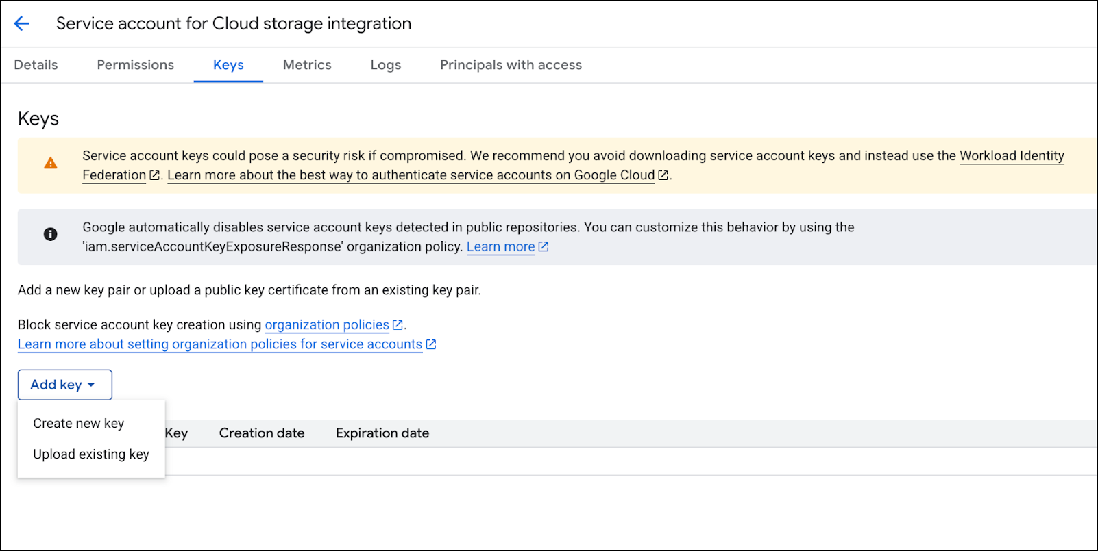 - Service Account Key Admin (roles/iam.serviceAccountKeyAdmin)