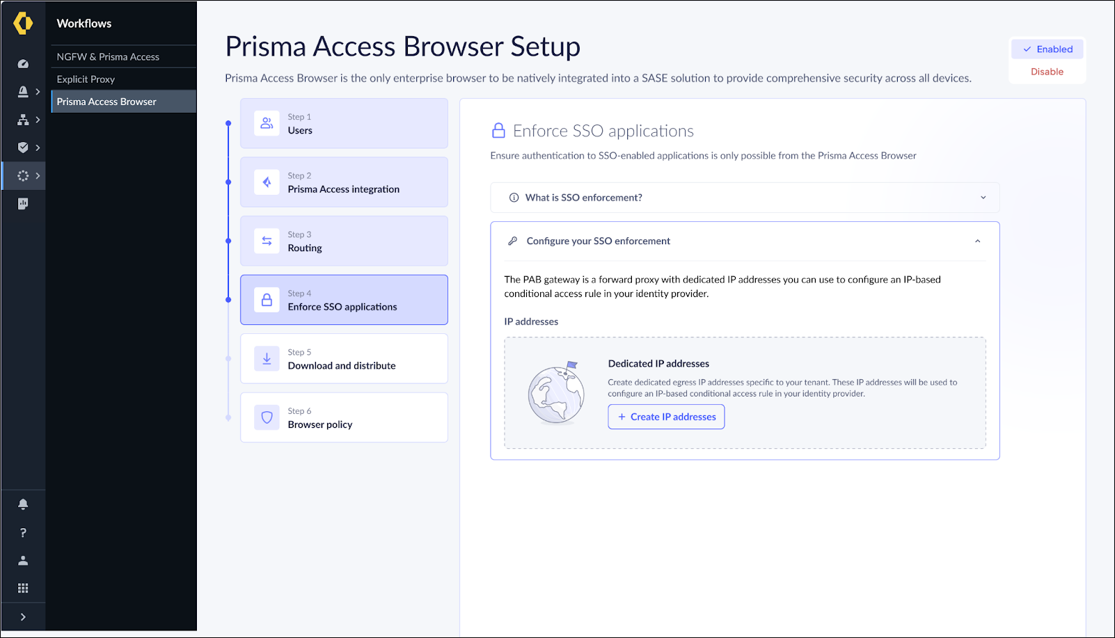 IP-based enforcement supports both Prisma Access Browser (PAB) and Prisma Access