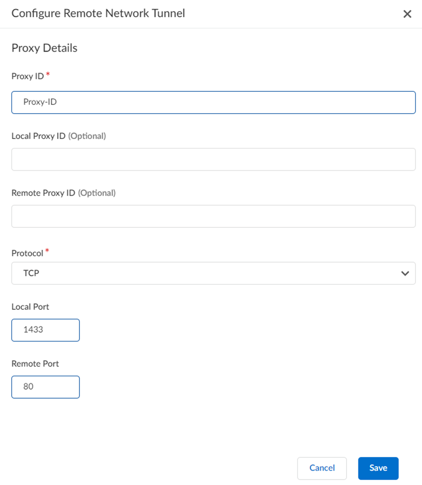 - Enter the Protocol to use for the proxy ID. Enter a Number, TCP, or UDP.