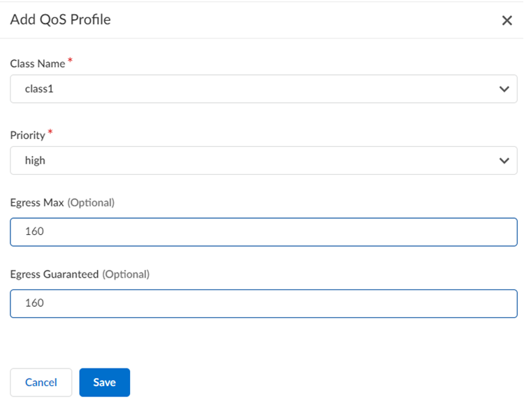 - (Optional) Enter an Egress Guaranteed (Mbps) value that represents the guaranteed bandwidth for this profile in Mbps.