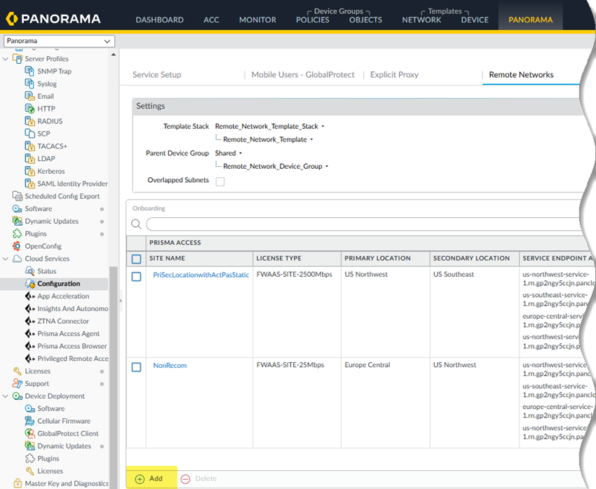 Here’s how to add a site-based remote network in Prisma Access (Managed by Panorama).