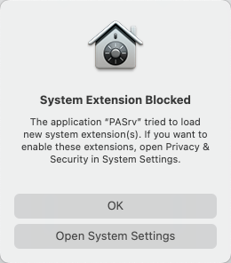 For the Prisma Access Agent to work, you need to enable the system extensions:- Click Open System Settings.![]()
