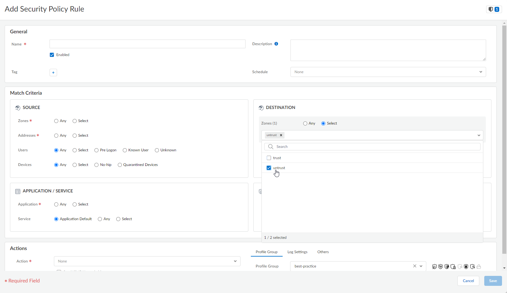 Create security policy rules for the data center resources you want to access.- Go to ConfigurationNGFW and Prisma Access, set the Configuration Scope to Prisma AccessMobile Users ContainerExplicit Proxy, then select Security PolicySecurity Services.Create security policy rules.In rules for data center access, ensure Zones under DESTINATION is set to trust.![]() If you enable Private Application Access under Explicit Proxy, Push Config to save your configuration changes after onboarding the ZTNA Connector. If you enable Private Application Access under Explicit Proxy, Push Config to save your configuration changes after onboarding the ZTNA Connector.