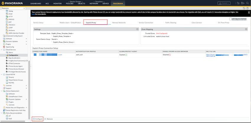 - DNS Proxy for explicit proxy configuration takes precedence over internal DNS Servers settings defined underPrisma Access Setup.