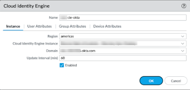 - Update Interval (min)—Enter the number of minutes that you want Panorama to wait between updates from the Cloud Identity Engine app to Panorama (also known as a refresh interval). The default is 60 minutes and the range is 5—1440.