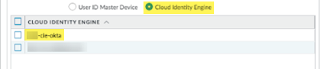 Select Cloud Identity Engine.Select the Cloud Identity Engine profile you created.