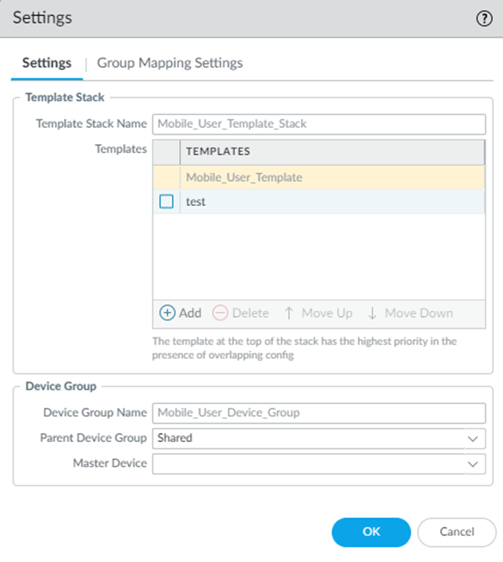 Prisma Access automatically populates username-to-user group mapping for the device group that is associated with the master device only. For this example, the auto-population would occur only in the Remote_Network_Device_Group device group and would not populate to any other device groups.Click OK.