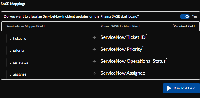 ServiceNow pushes the correct data for a Prisma Access incident. Enter