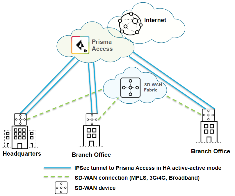 | Securing branch and HQ sites with active/active SD-WAN connections |