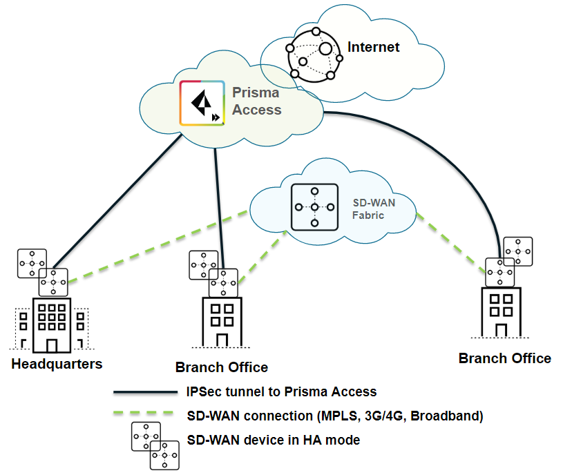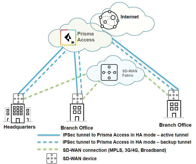| Securing branch and HQ sites with active/backup SD-WAN connections |