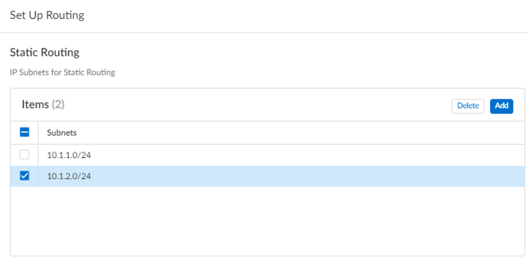 2. Add the IP subnets or IP addresses that you want to secure at the branch. If you make any changes to the IP subnets on your branch, you must manually update the static routes.