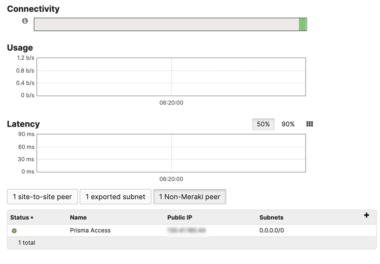 2. From the Meraki web interface, check the status of the non-Meraki VPN and view its Status.