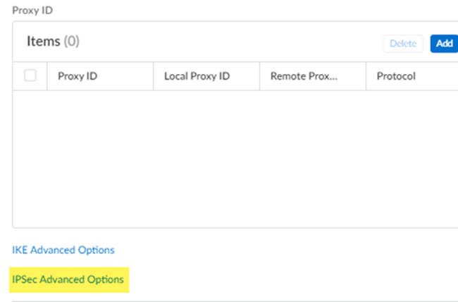 For the strongest security, select the group with the highest number. If you don’t want to renew the key that Prisma Access creates during IKE phase 1, select no-pfs (no perfect forward secrecy). If you select this option, Prisma Access reuses the current key for the IPSec SA negotiation.