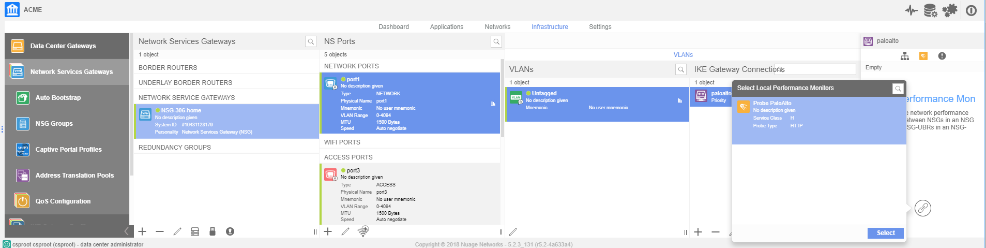 Next steps: Learn how Nuage Networks monitors the remote network, and troubleshoot the Nuage Networks remote network connection to Prisma Access, if required.Nuage Networks Dead Peer Detection and Internet Probing