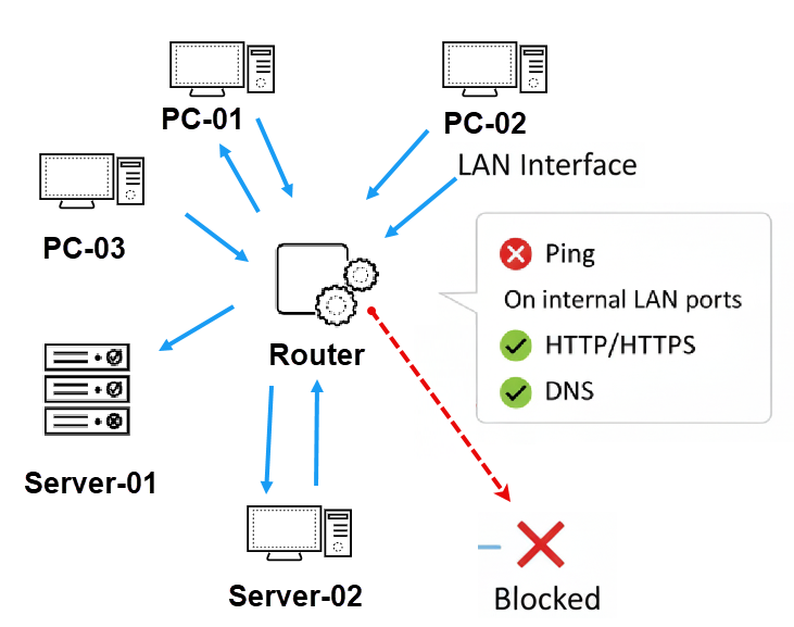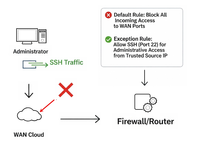 - Allowing Access to WAN Interfaces: Block all incoming access to WAN ports