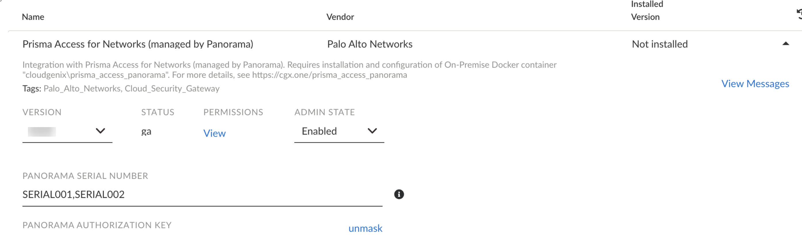 Prisma Access for Networks (Managed by Panorama) CloudBlade versions 3.x.x and