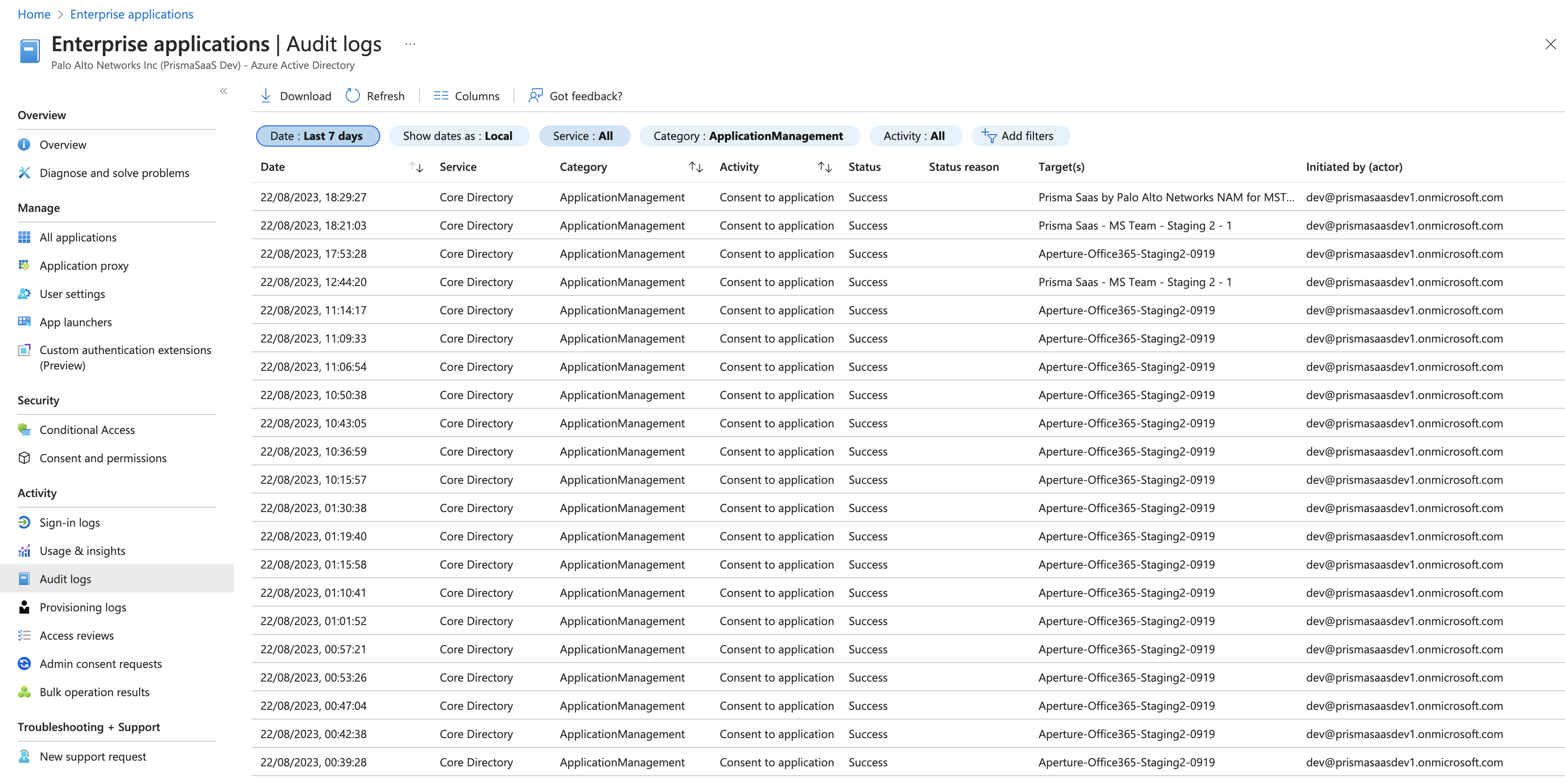 - If Palo Alto Networks application is not listed, check if the Audit Logs