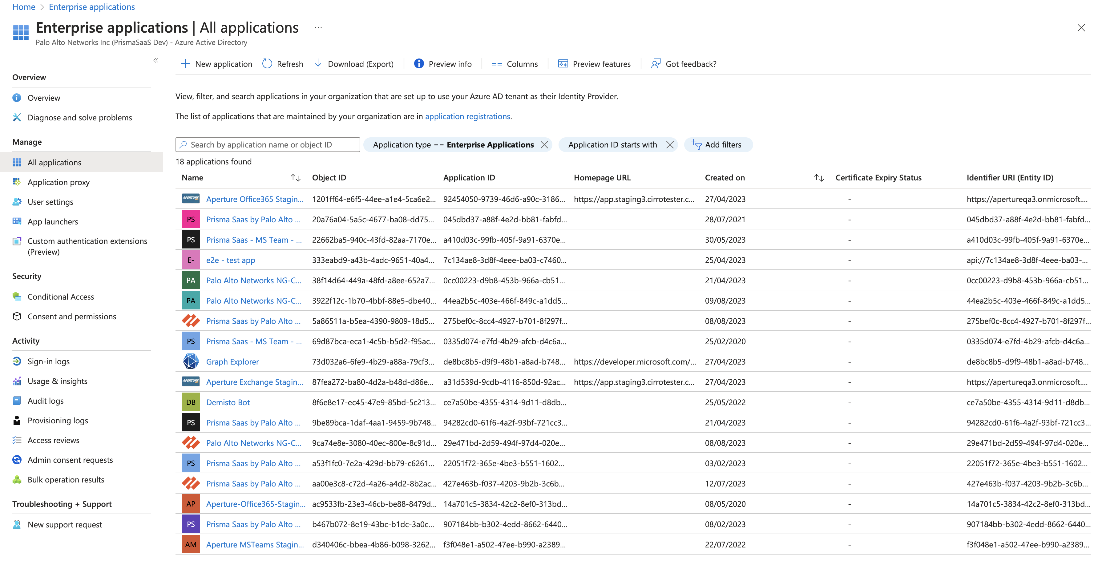 - Check if Palo Alto Networks application is listed in the list of Enterprise