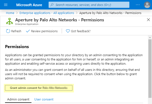 - Select Aperture by Palo Alto NetworksSecurityPermissions.