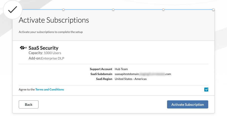 Verify your activation selections, read and agree to the terms and conditions, then Activate Subscription.