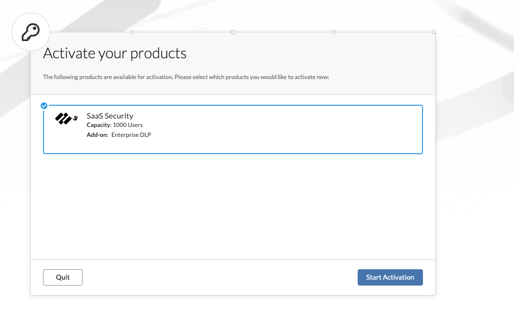 - Open your Data Security activation email and click Activate.The number of Activate buttons in the email you received depends on what you purchased. Each Activate button launches the same onboarding workflow that lets you activate all your purchased products together. Click any Activate button to begin. Additionally, your activation email depends on the type of activation: purchase, trial, or evaluation.