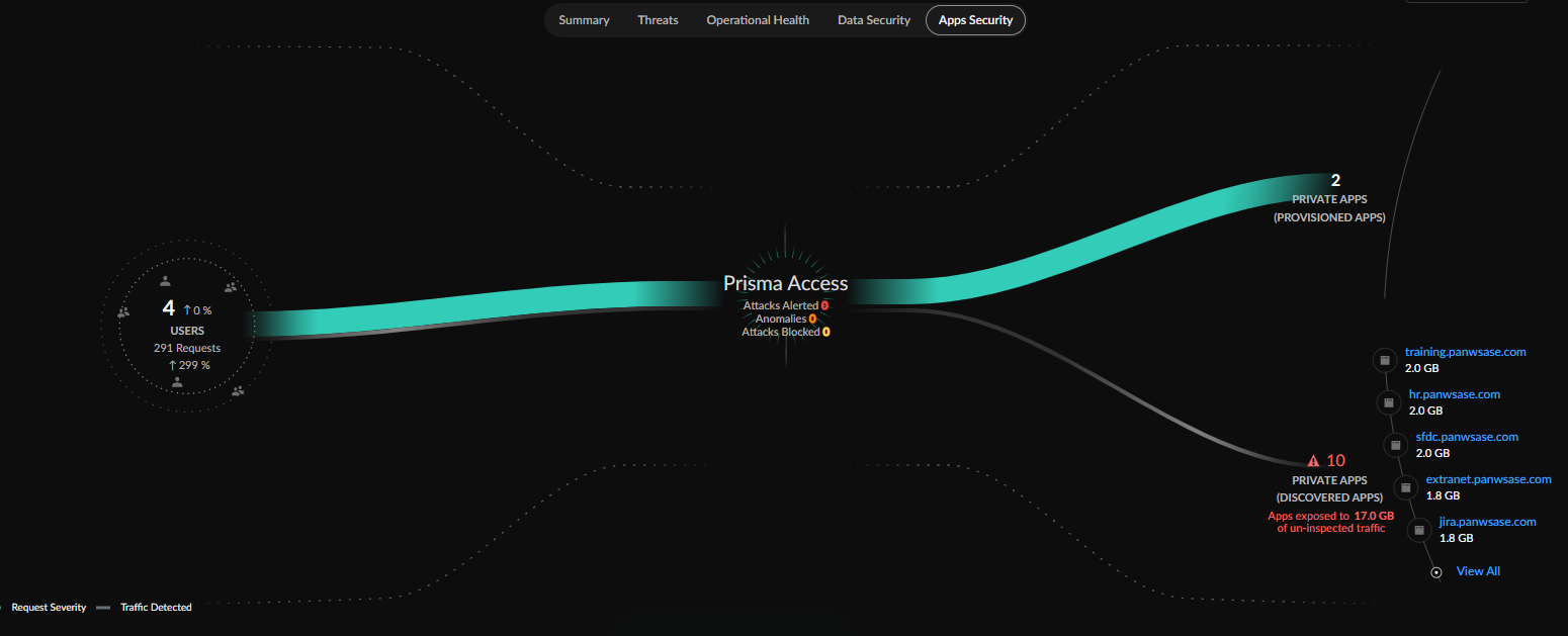 - A comprehensive view of all traffic on your network flowing between sources (users, IoT devices, external hosts) to applications (internet, SaaS, private).