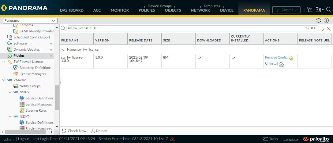 NSX. The Panorama plugin for VMware NSX automatically licenses VM-Series