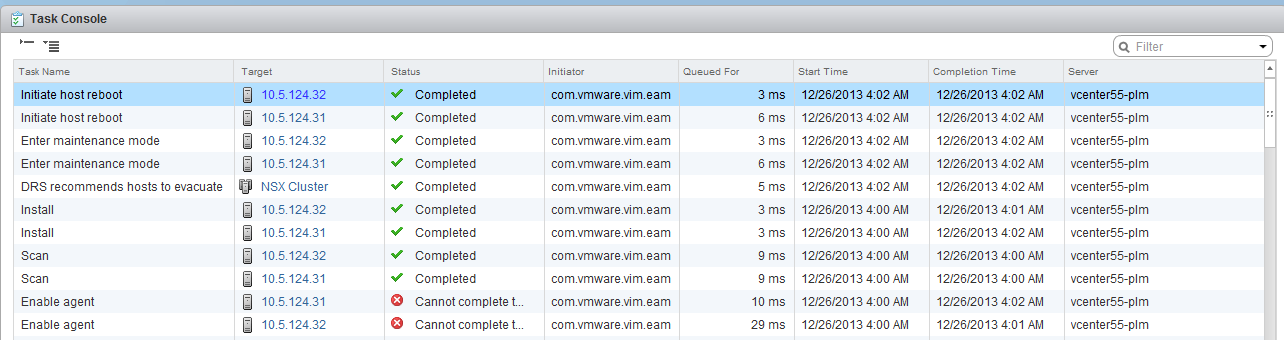 As new ESXi hosts are added to a cluster, this process is automated and the necessary NSX-V components are automatically installed on each guest on the ESXi host. - If the Installation Status is not ready or a warning